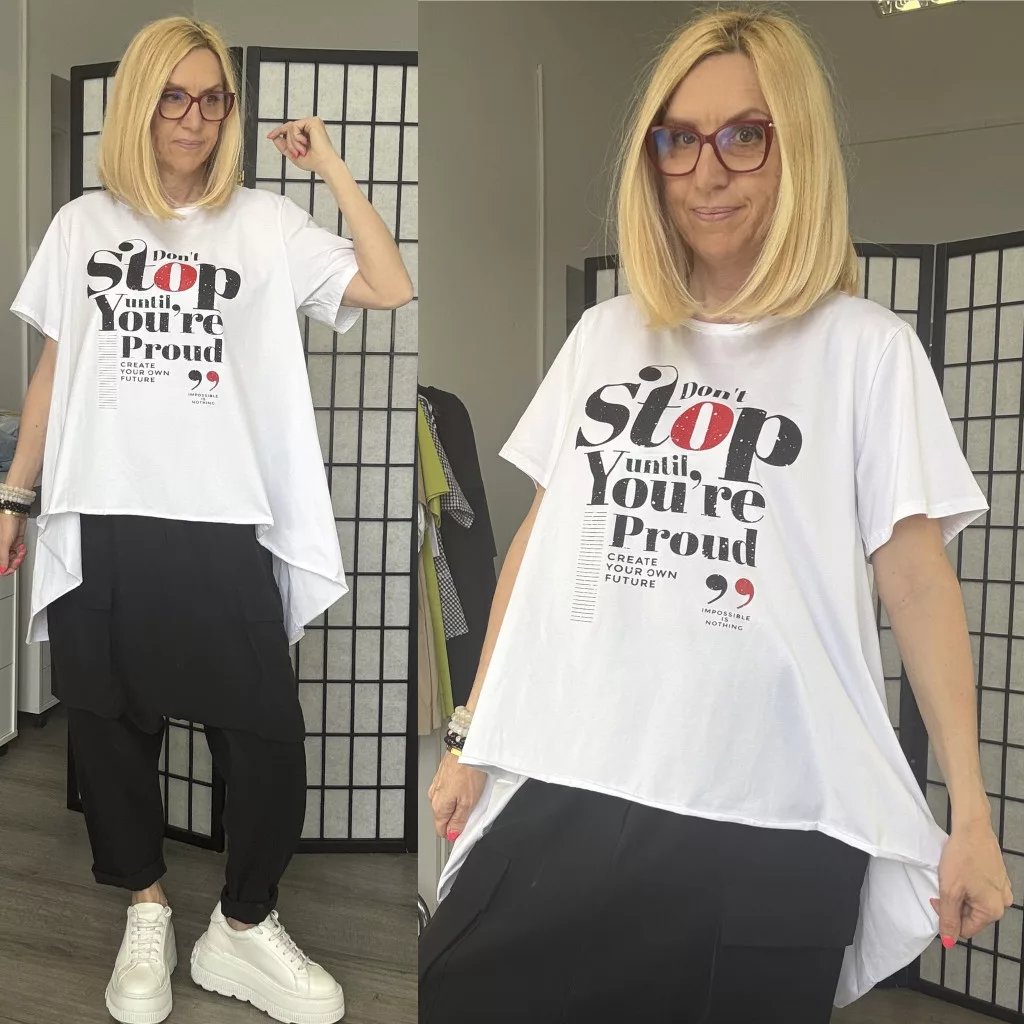 158C Don't Stop lefele bővülő tunika 57041 - fehér