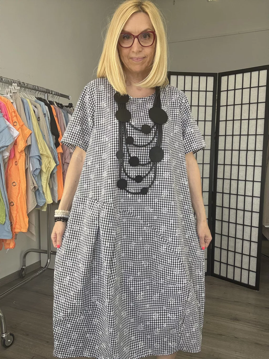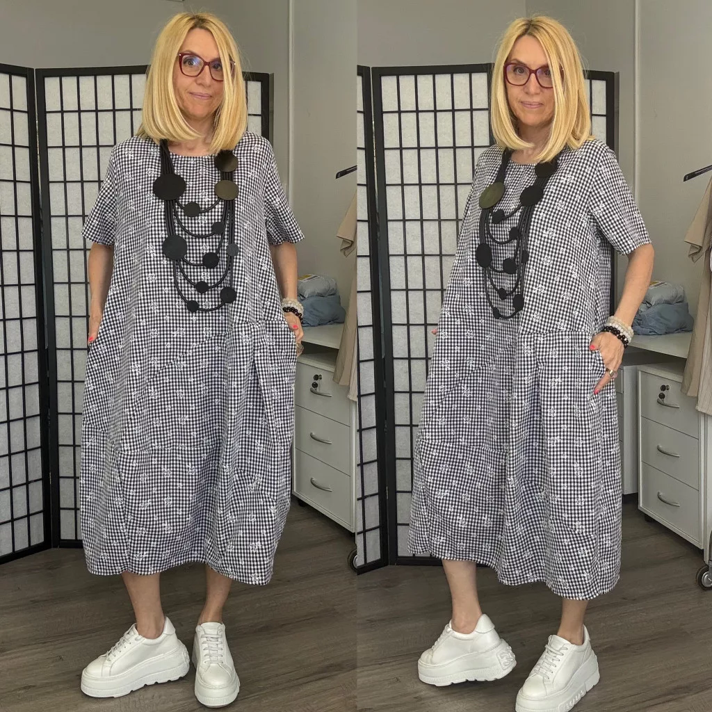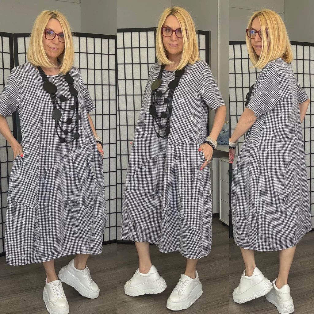 Hagyma fazonú kockás vászonruha