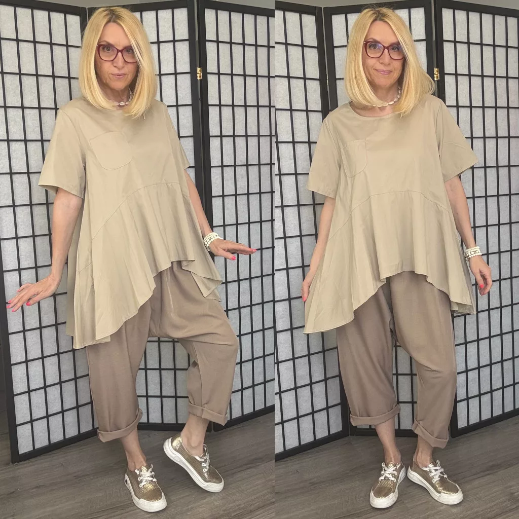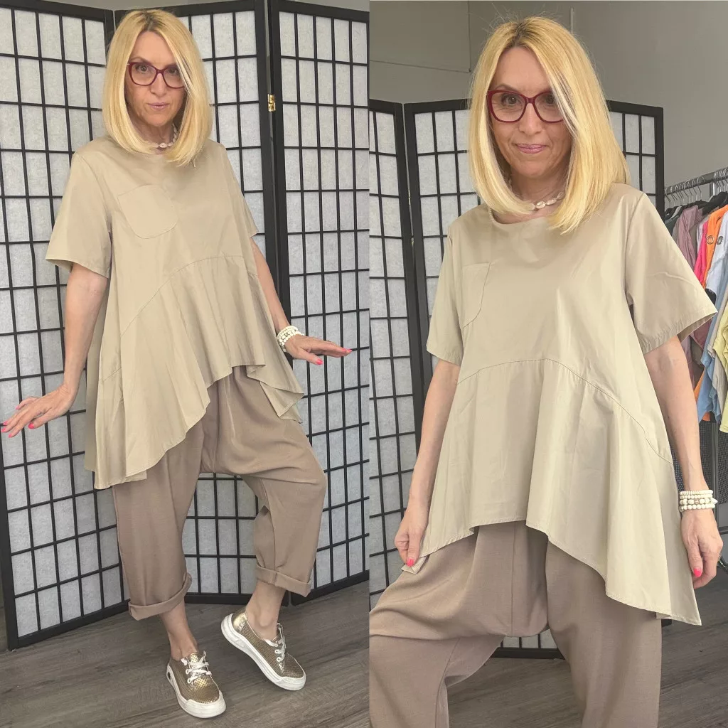158C lefele bővülő vászon tunika 53256- bézs