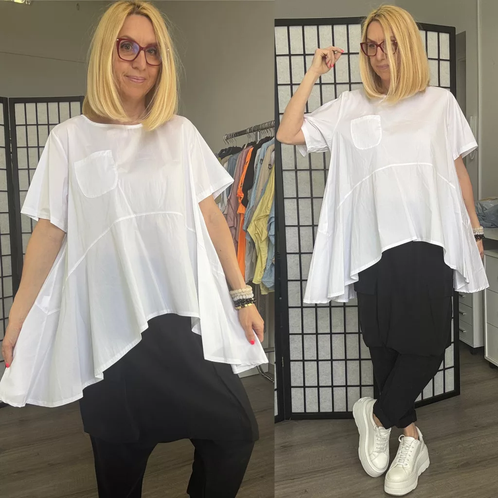 158C lefele bővülő vászon tunika 53256- fehér