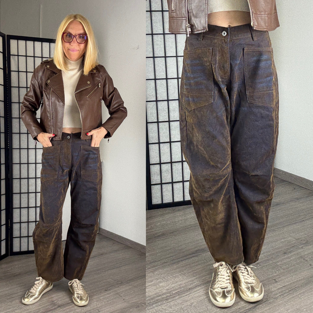 Magasderekú nagyzsebes elülső zsebes farmer.