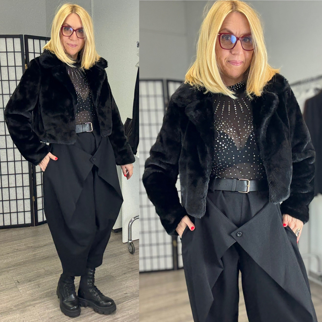 Rövidszőrű, zsebes crop bundácska.