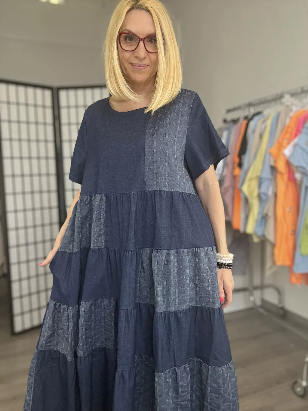Fodros, nyári ruha, zsebekkel.