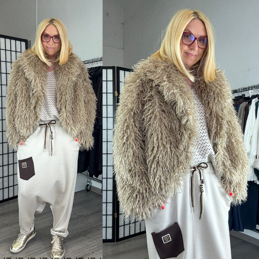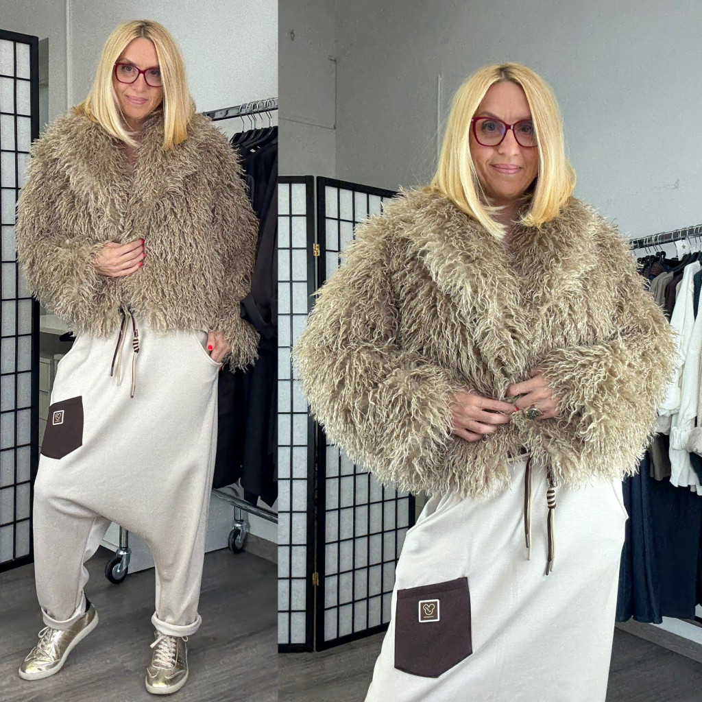 Puha, játékos és stílusos darab, amely azonnal különlegessé teszi megjelenésed. Rövid fazonja modern, a göndör szőrmehatás pedig extra sikket ad. Ideális választás hűvösebb napokra, farmerrel vagy elegáns szettel kombinálva.