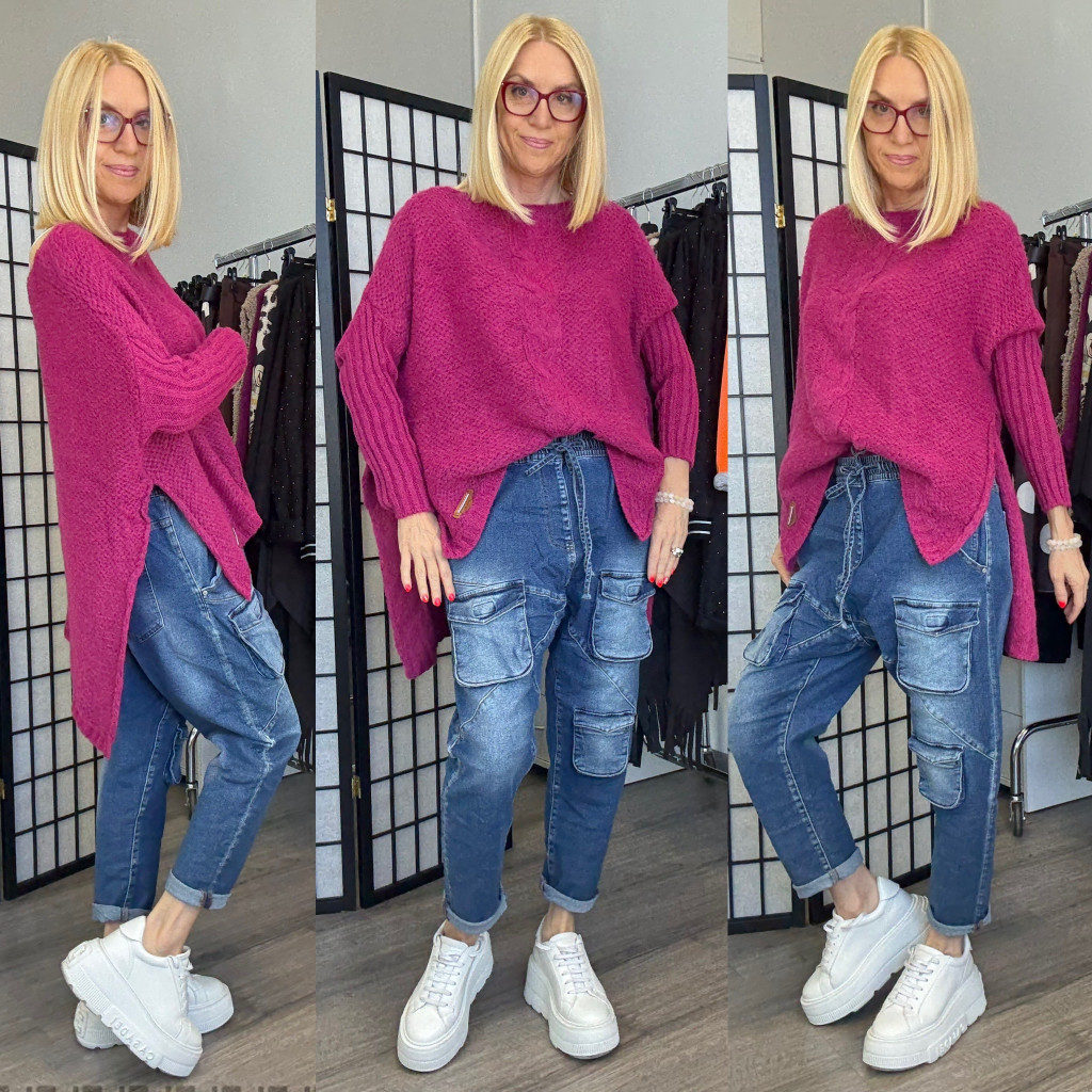 Ciara hosszú ujjú oversize csavartmintás pulóver - magenta
