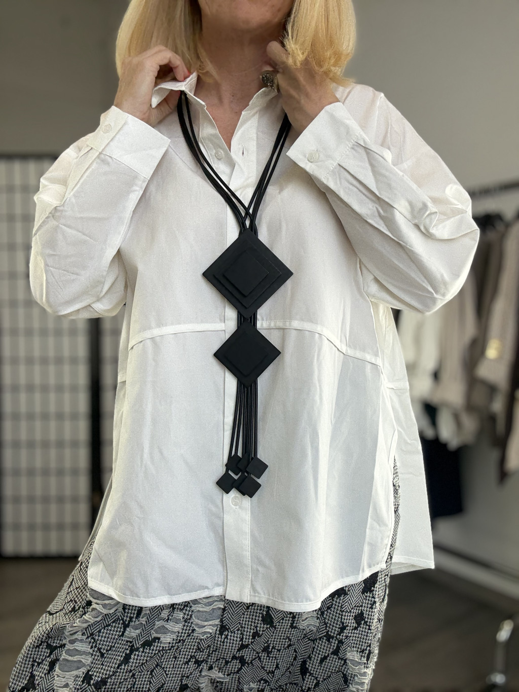 Cindy többrétegű hosszú nyaklánc fa elemekkel, zár nélkül - fekete