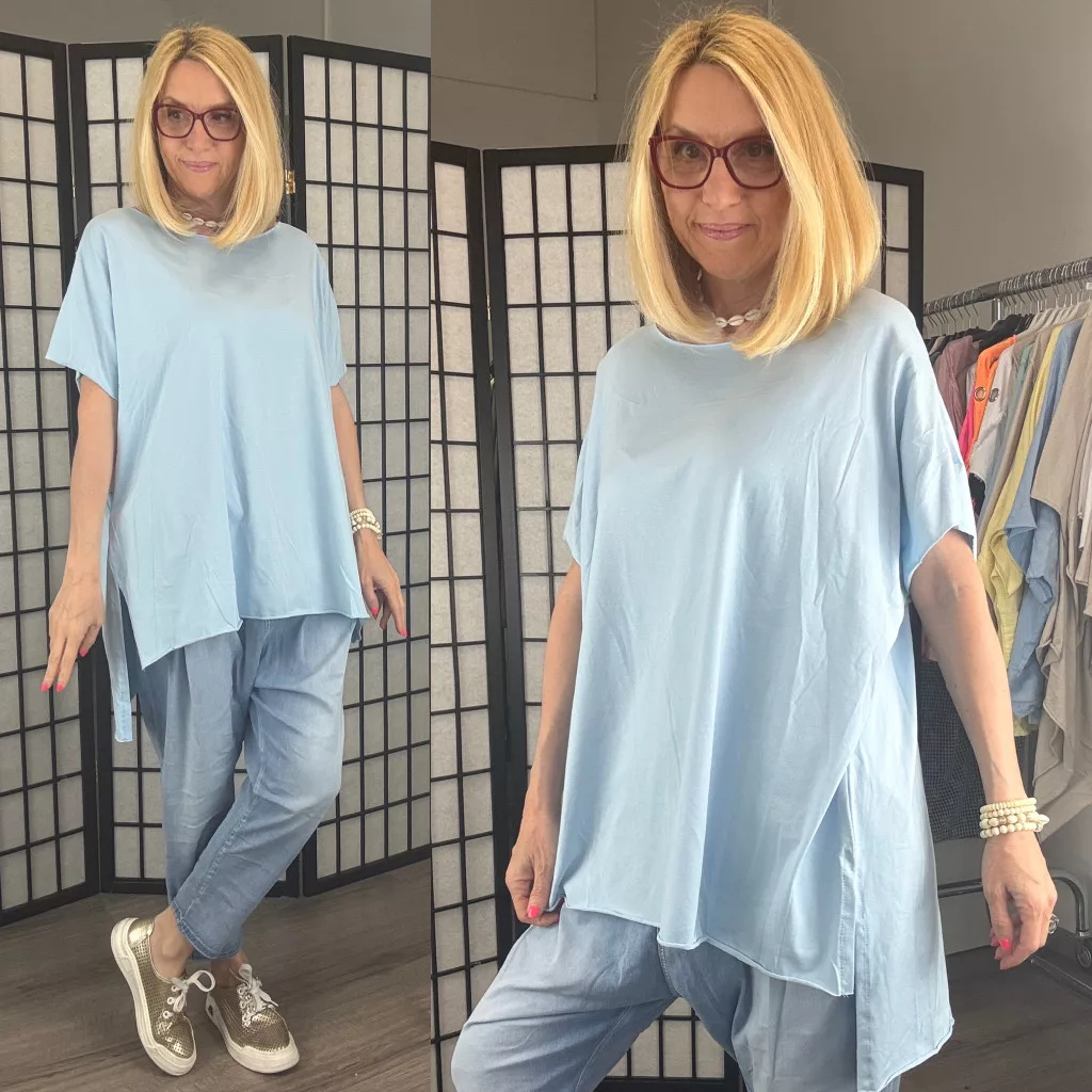 Lézervágott basic tunika. Környakú, elől rövidebb.