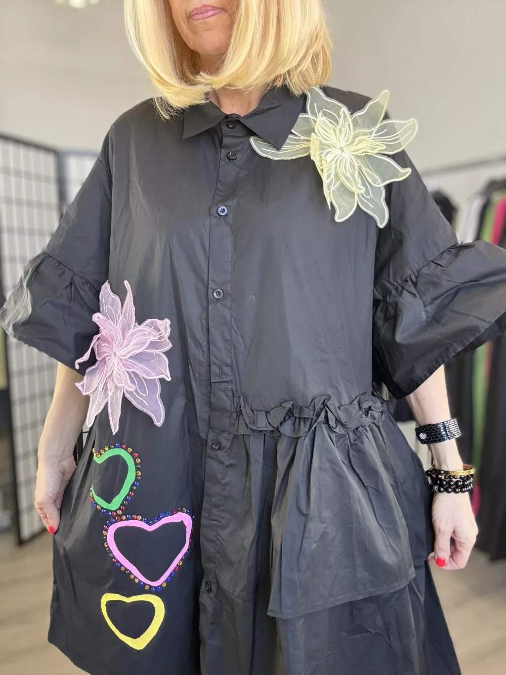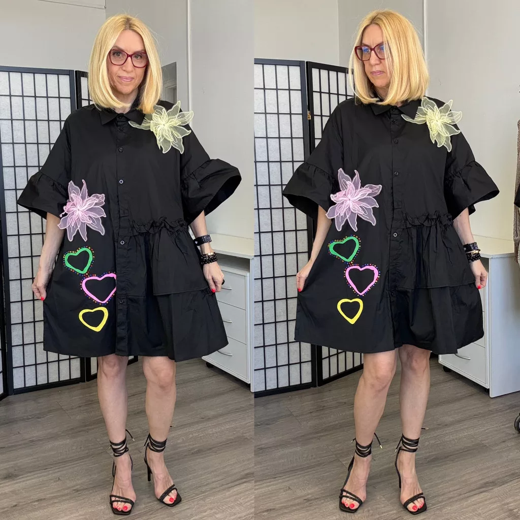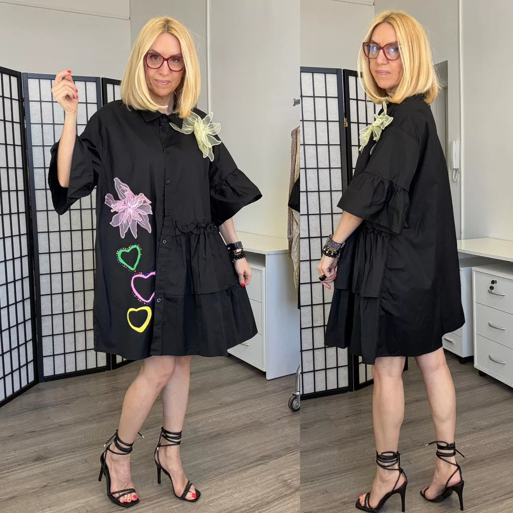 Fly Out fodros strasszos vászon ingruhaA51056-fekete