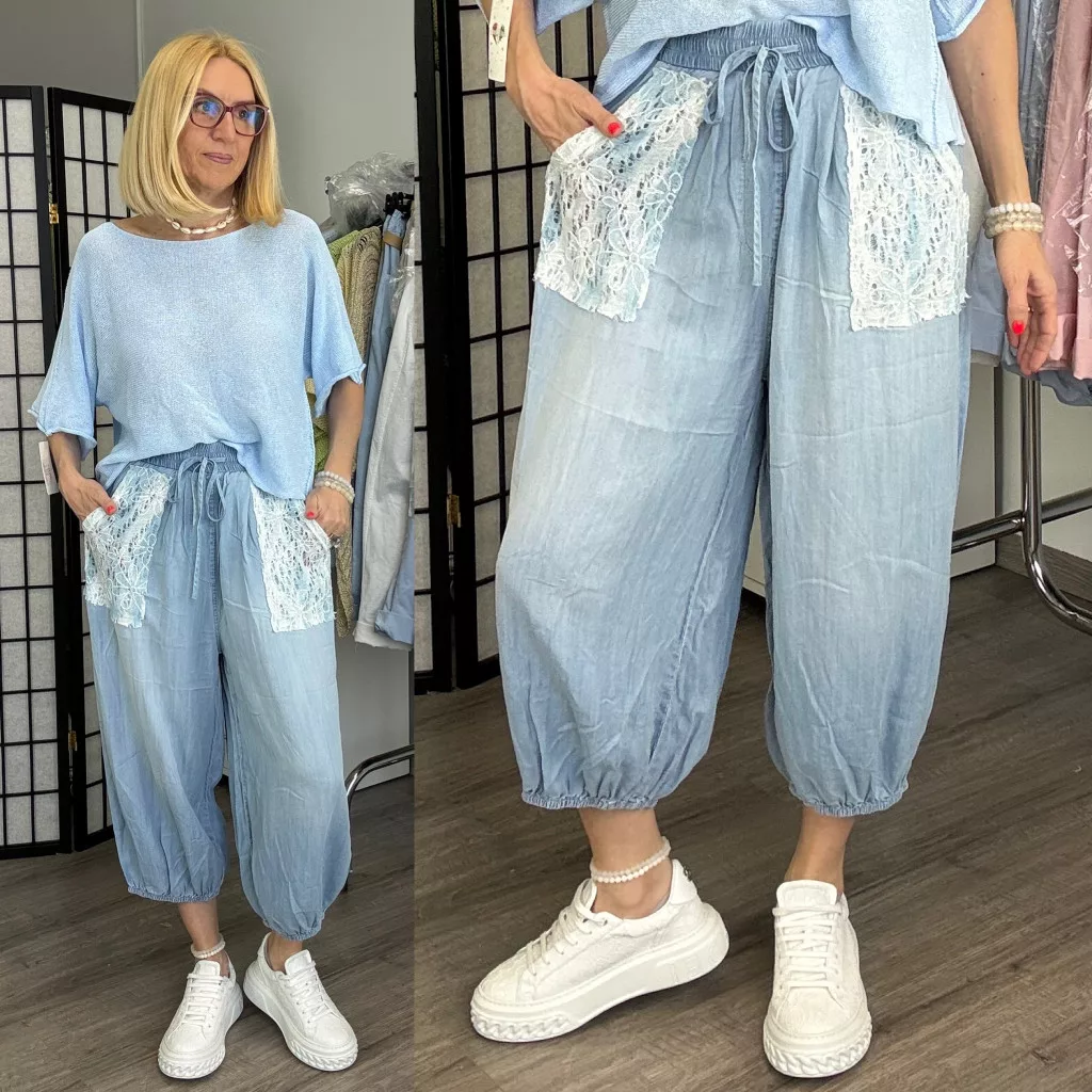 S Woman gumis derekú buggyos farmer csipkés zsebbel SW5063-világoskék