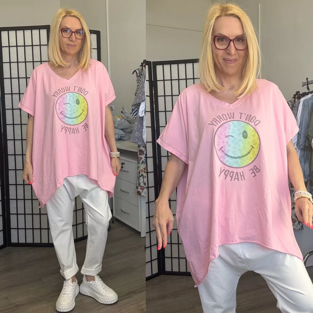 Hello Mya Be happy strasszos smile tunika 70947 - rózsaszín