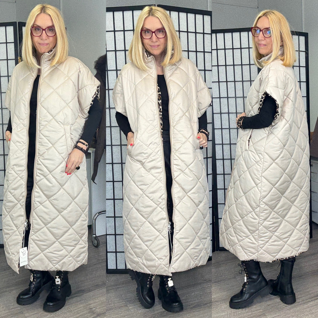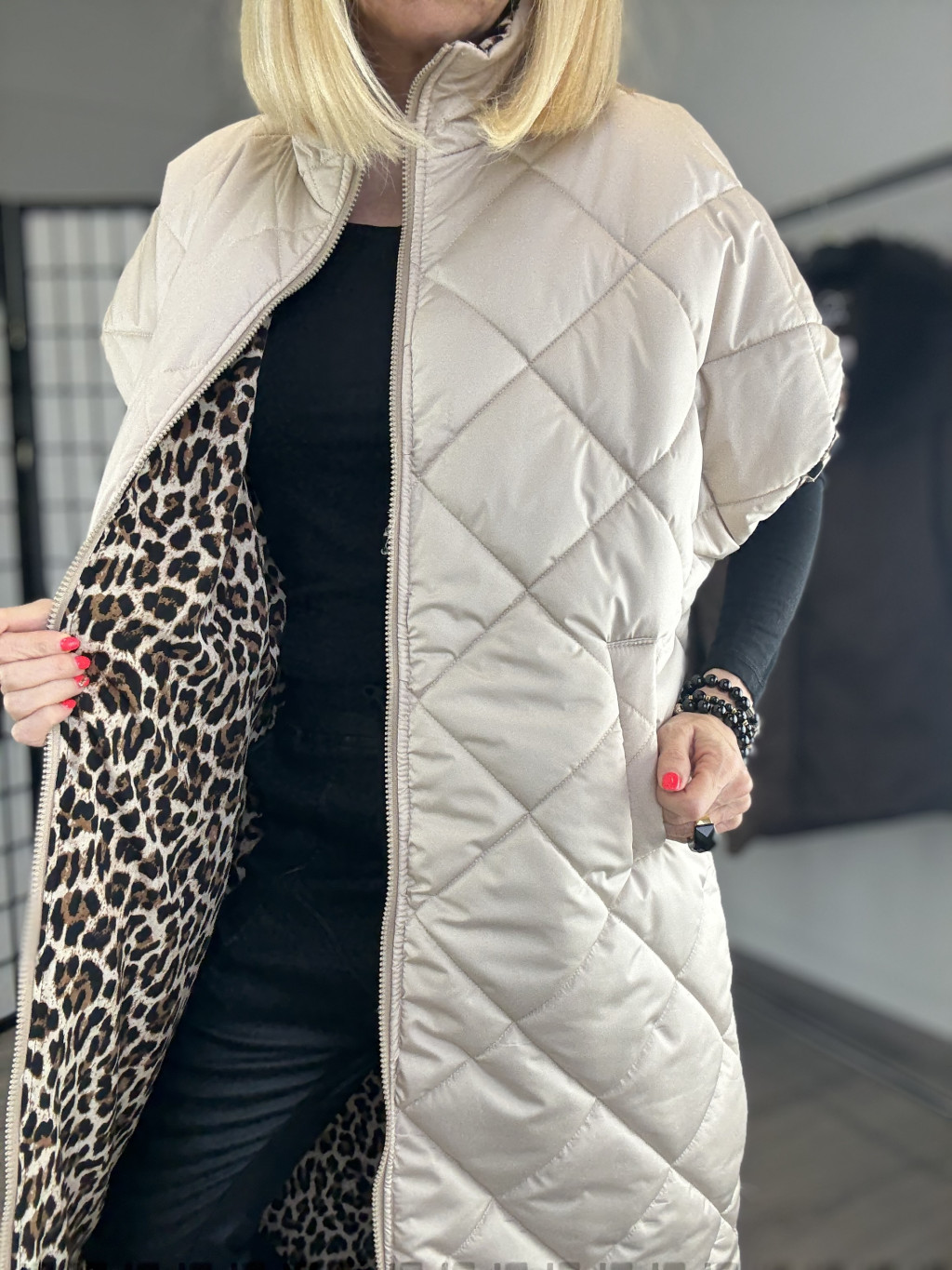 Lamya hosszú mellény, belül ocelot mintával 6628 - bézs