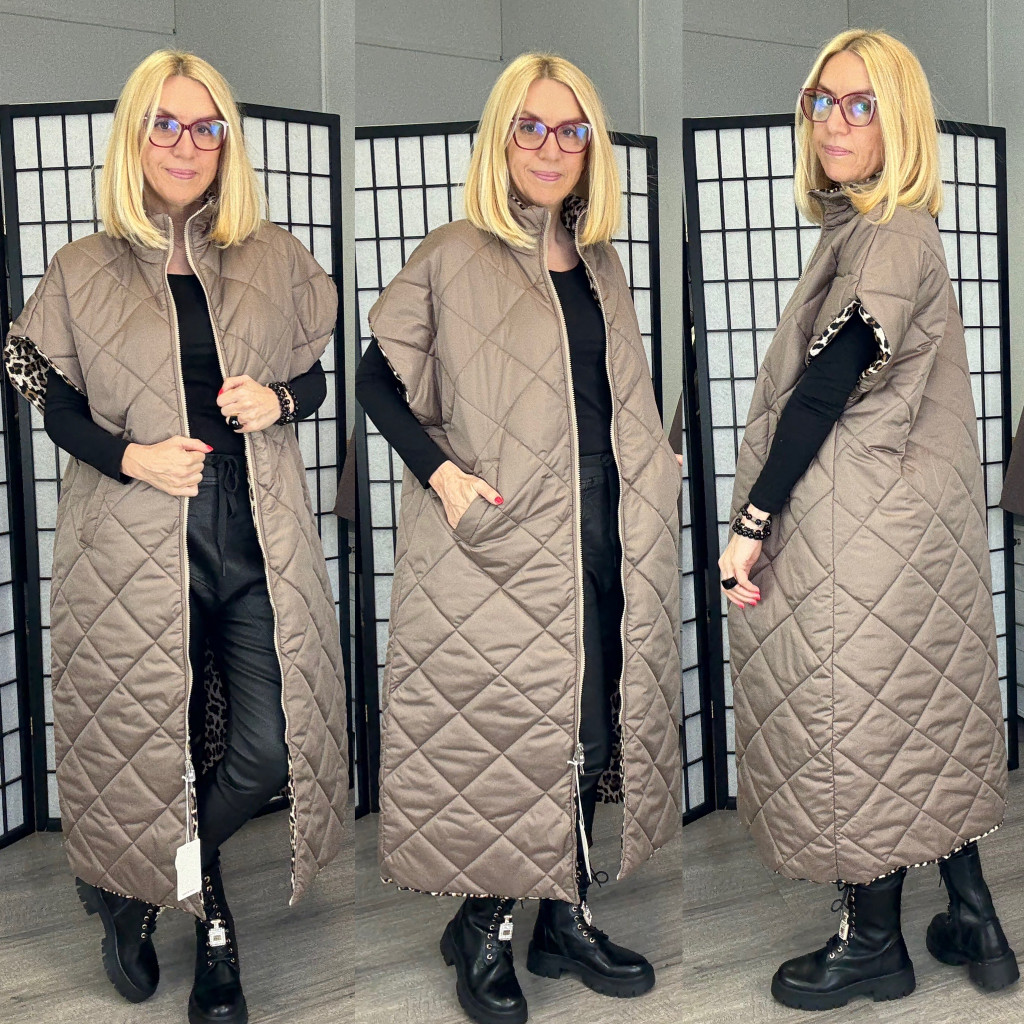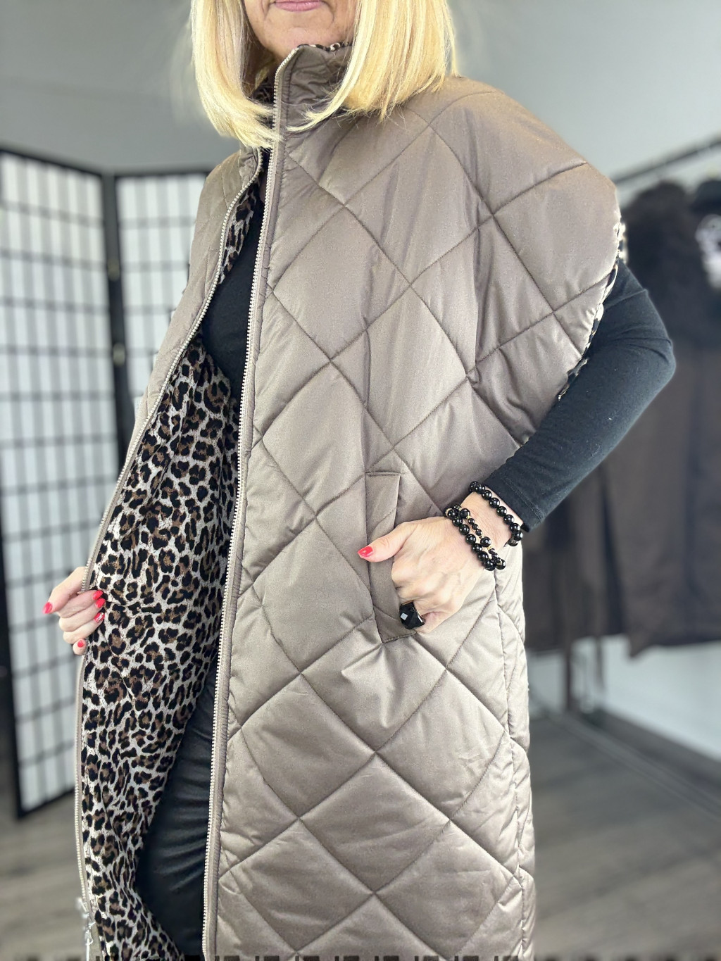 Lamya hosszú mellény, belül ocelot mintával 6628 - taupe