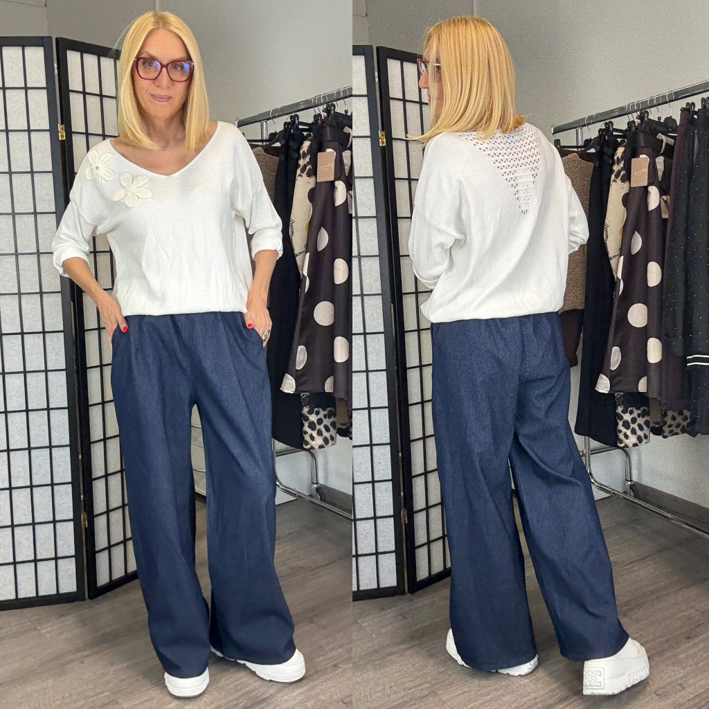 Livans V kivágású vékonykötött virágos felső 8552 - fehér