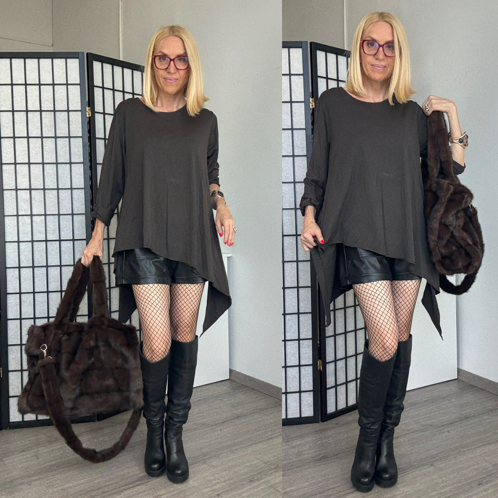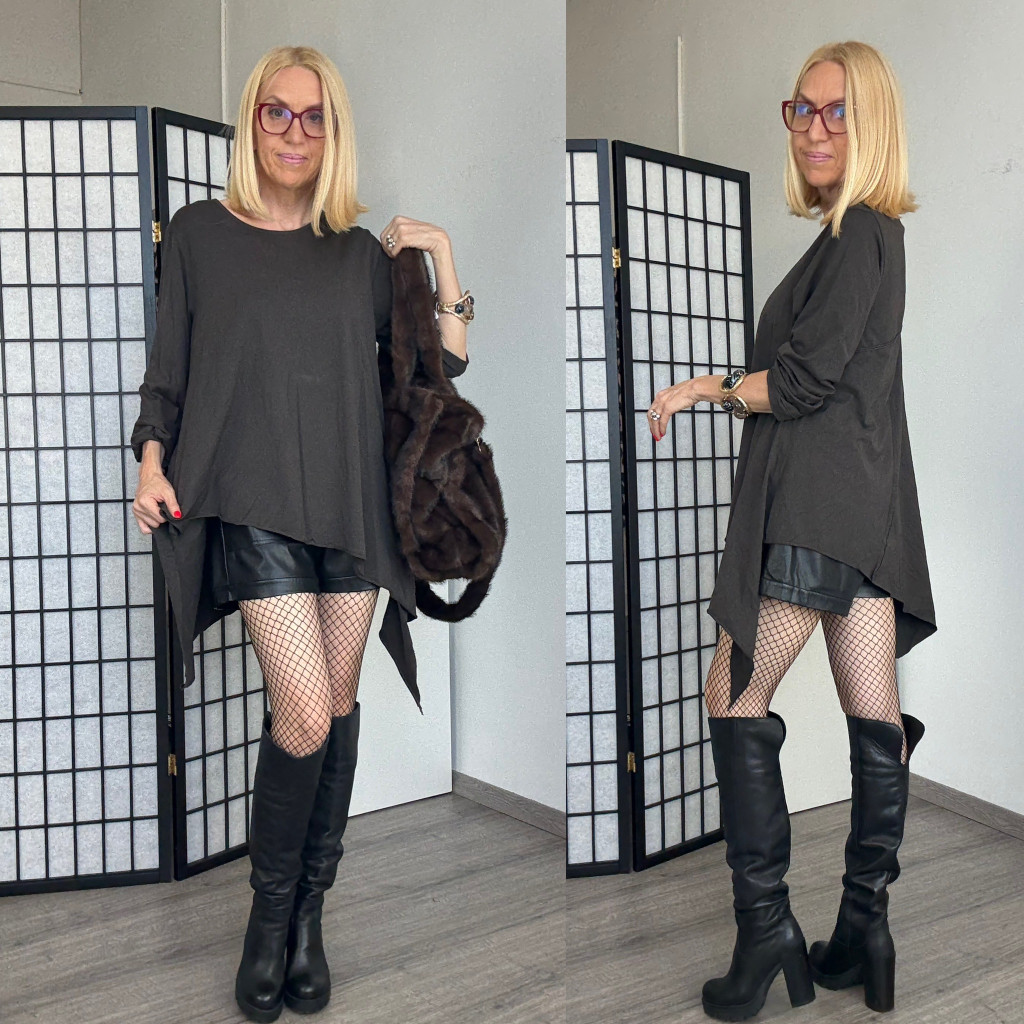 Lux Luna asszimetrikus pamut tunika 51040B - csokibarna