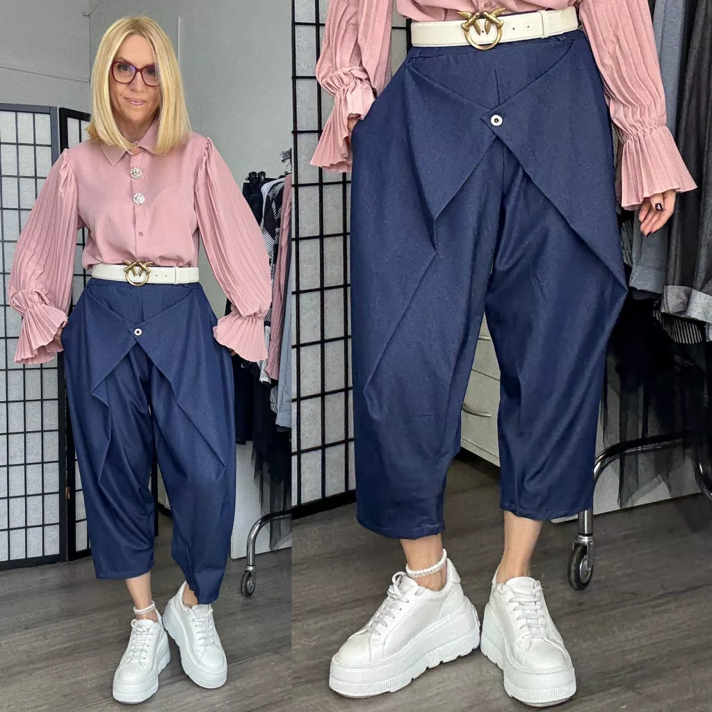 Lux Luna elől átlapolt gombos farmerhatású nadrág övvel 5181-sötétkék