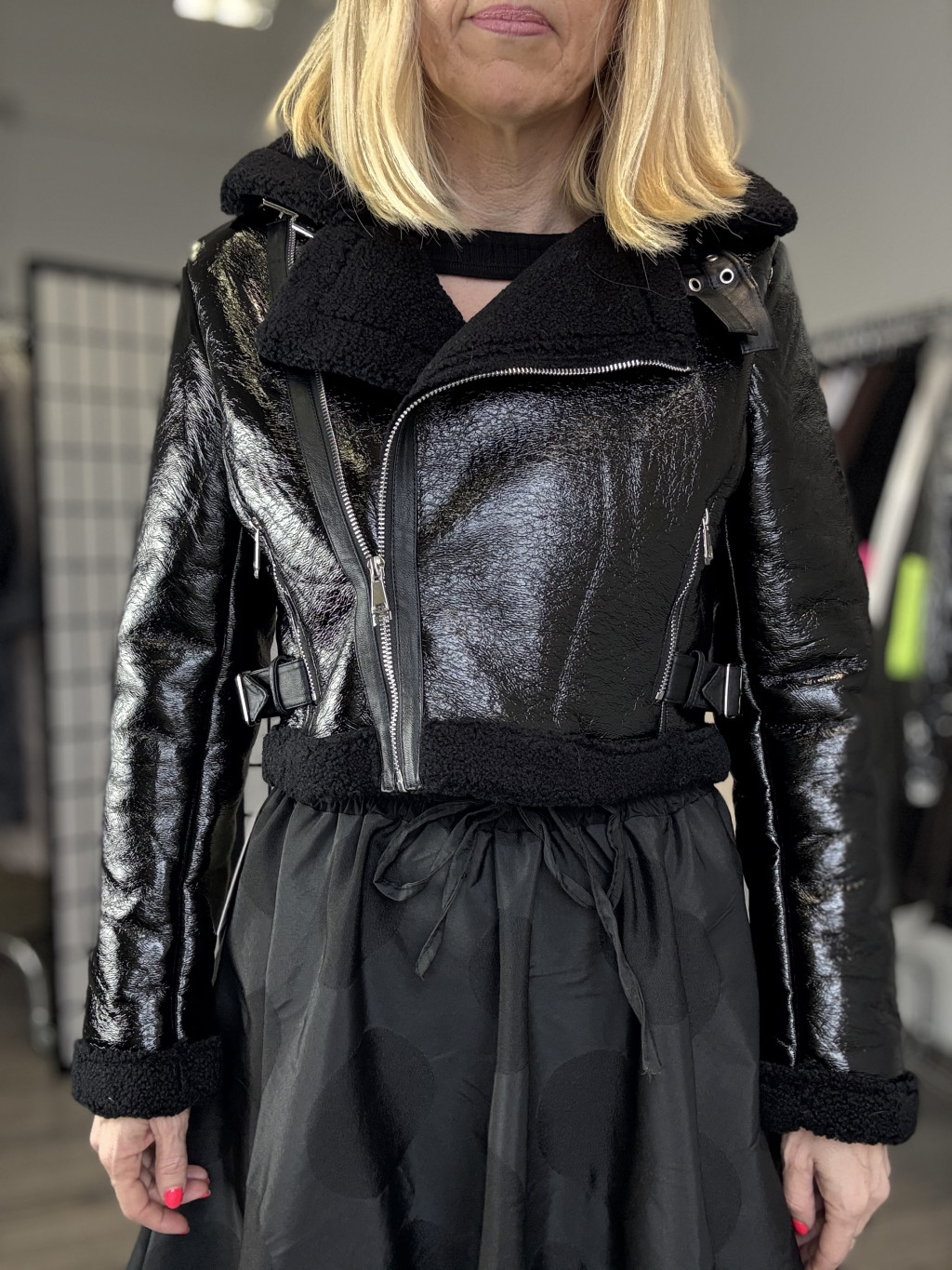 Ezüst cipzáros crop dzseki.