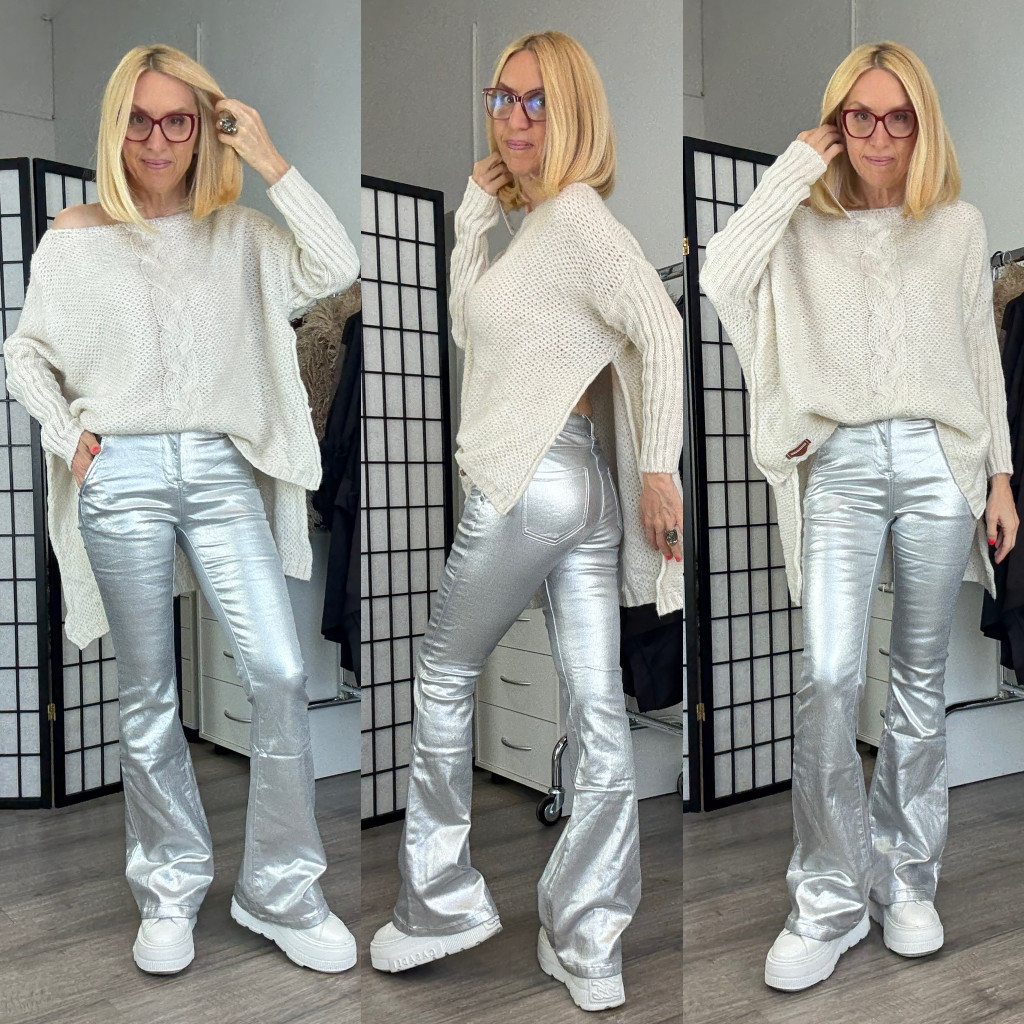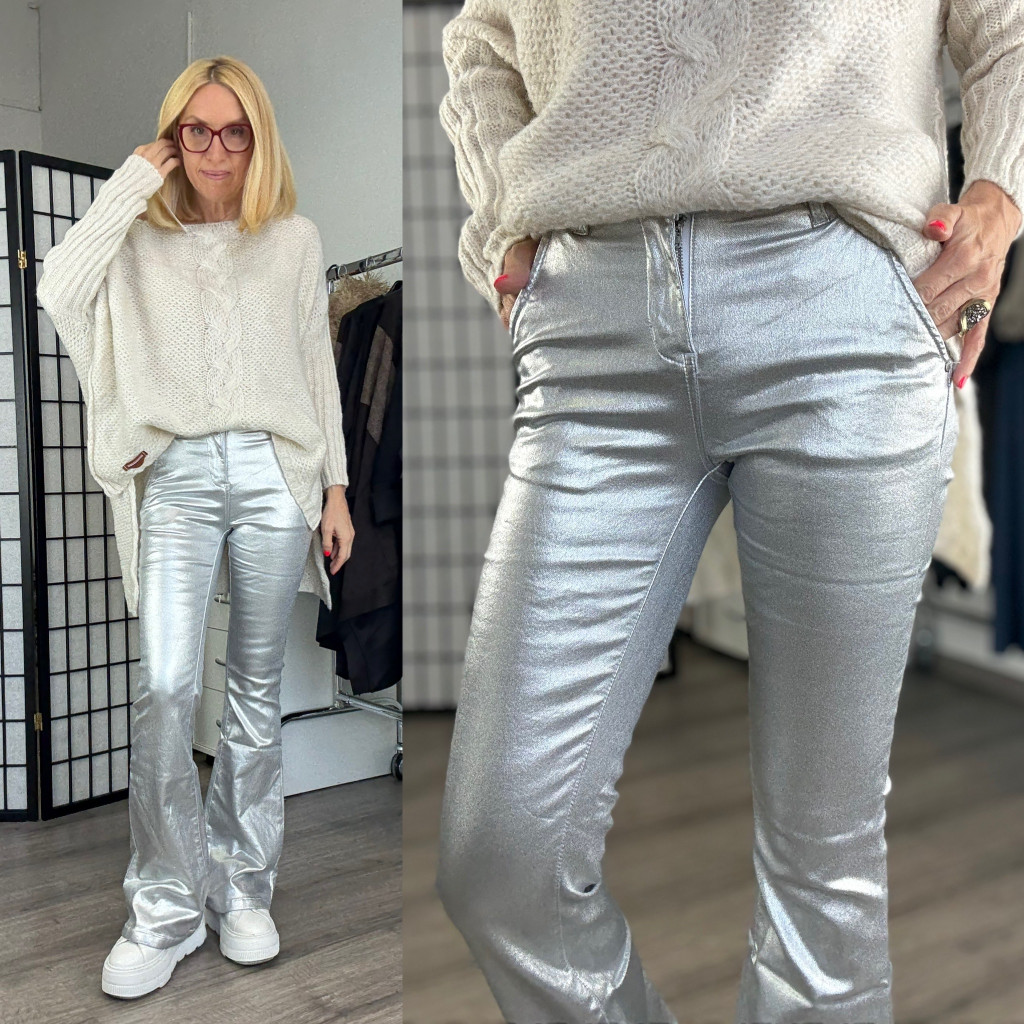 Melly elasztikus, bélelt trapéz nadrág 7289-84 - ezüst