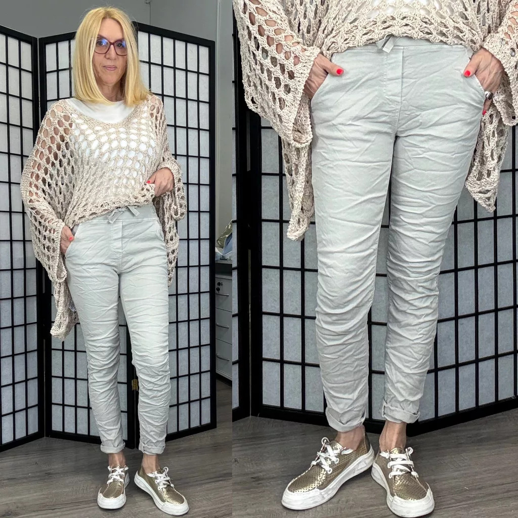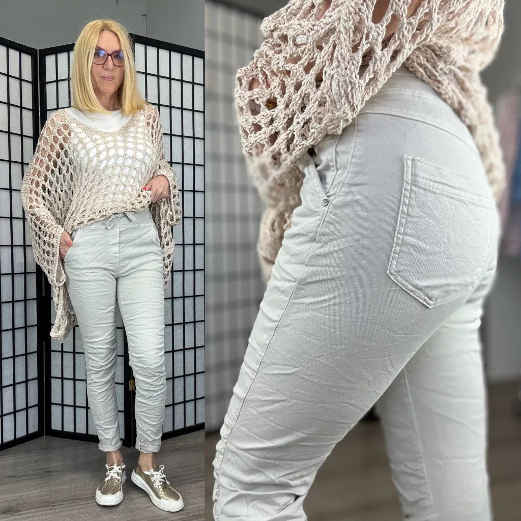 Melly gumis derekú elasztikus farmer8139-bézs