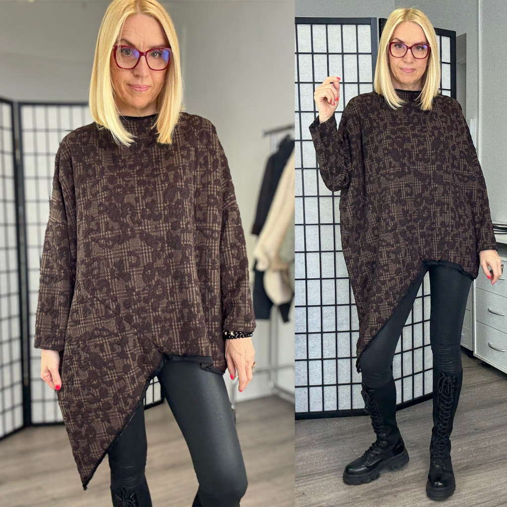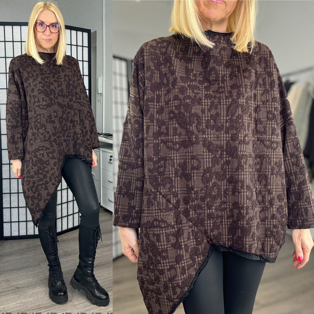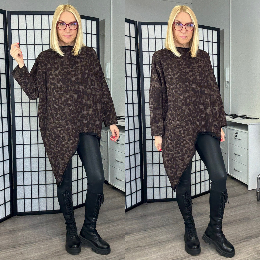 Mitica kockás hosszú ujjú aszimmetrikus tunika 8880 -csokibarna
