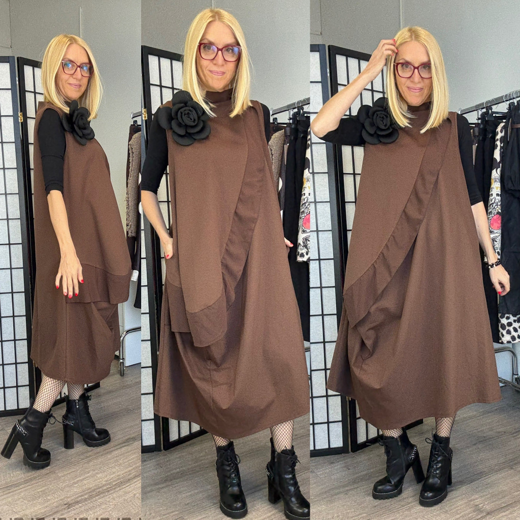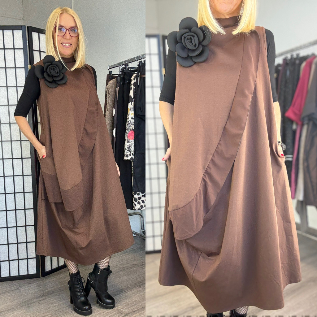 Mitica ujjatlan rózsás ruha 8680 - csokibarna