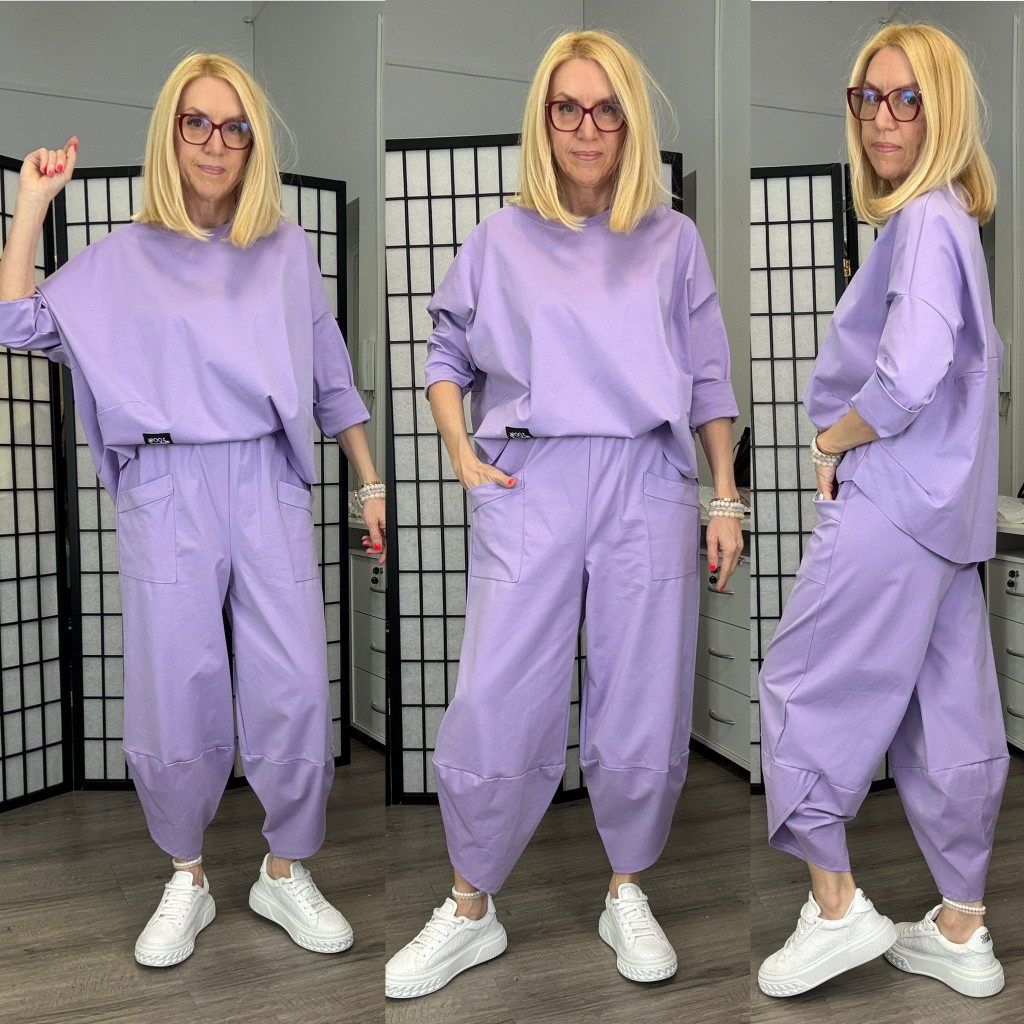 Elől zsebes nadrág oversize felsővel.