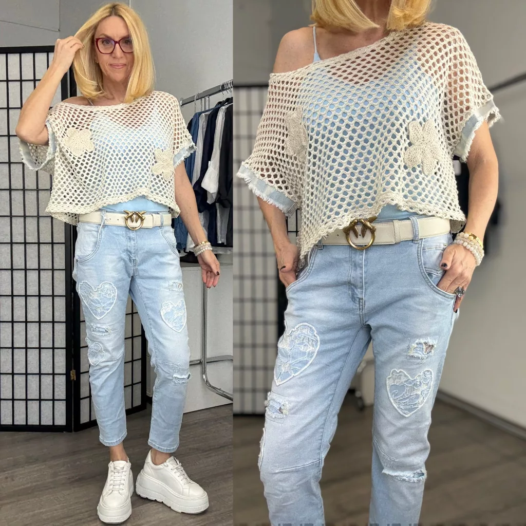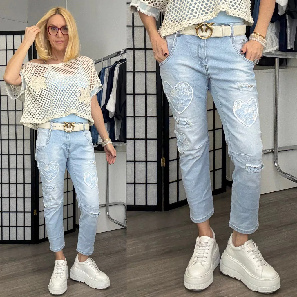 S Woman csipkés szívecskés farmerSW1916-világoskék