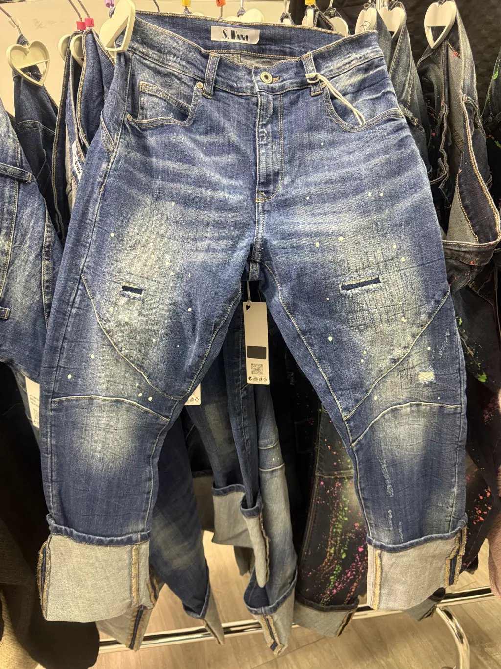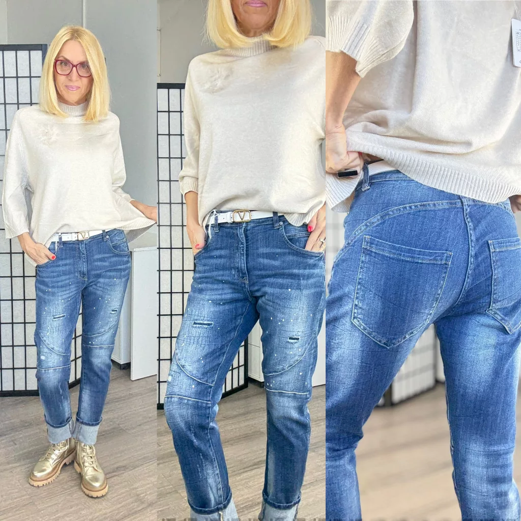 S Woman elasztikus fröcskölt farmer SW1704-középkék