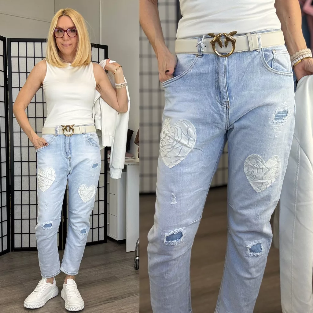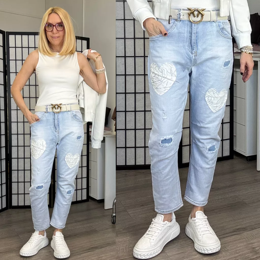 S Woman elasztikus szívecskés nyomatos farmer SW1988-világoskék
