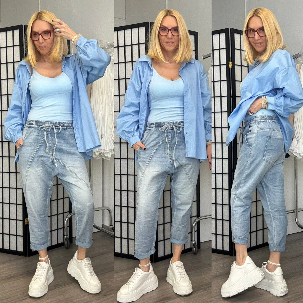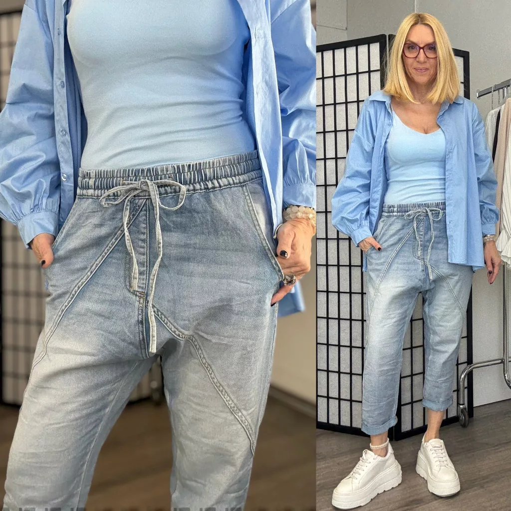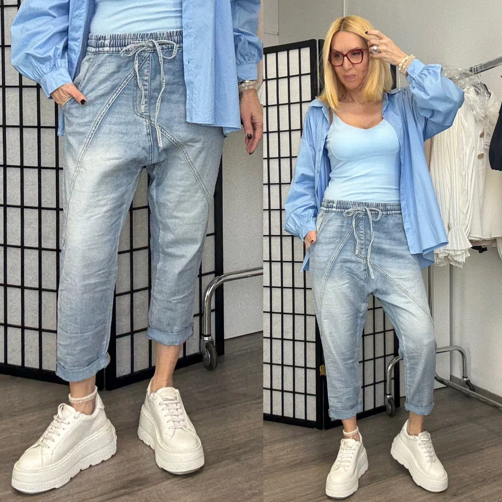 S Woman gumis derekú ülepes farmer SW1892-világoskék
