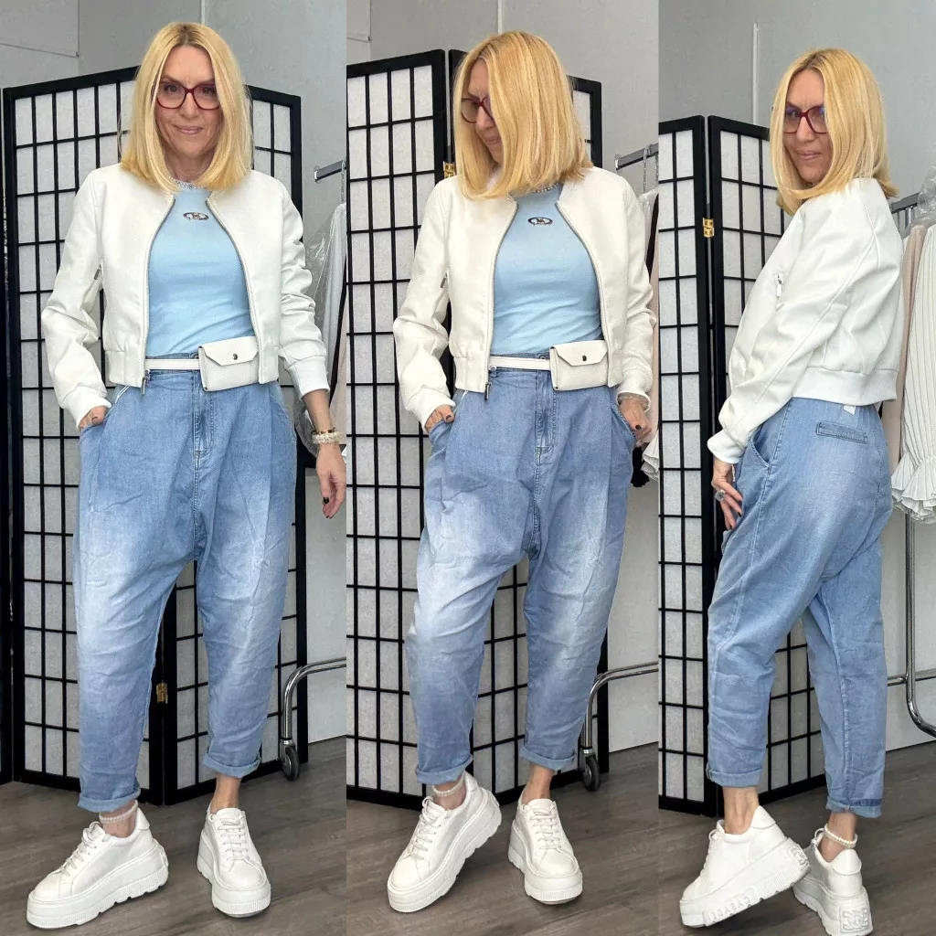 S-Woman gumis derekú ülepes farmer SW1995 - világoskék