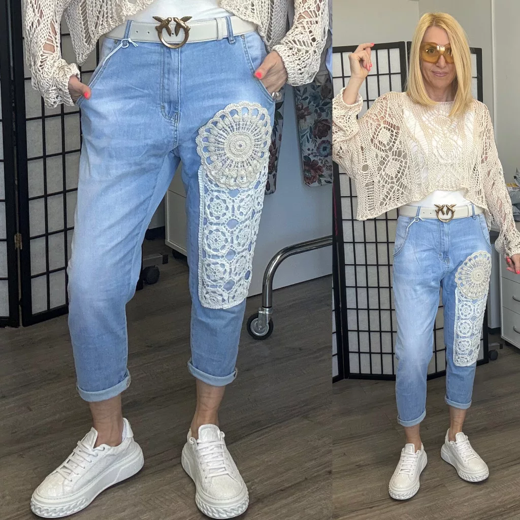 S Woman horgolt elasztikus ülepes farmer SW1851 - világoskék