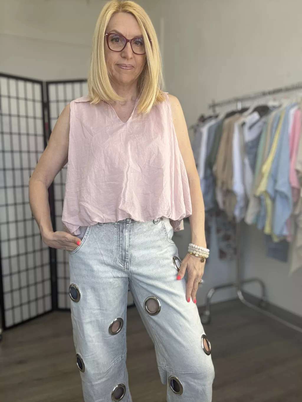 Szegecses, lyukas farmer