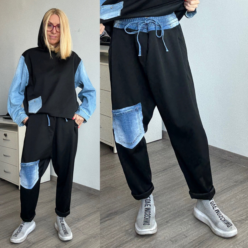 S Woman ülepes nadrág farmer betéttel 2021/2 - fekete
