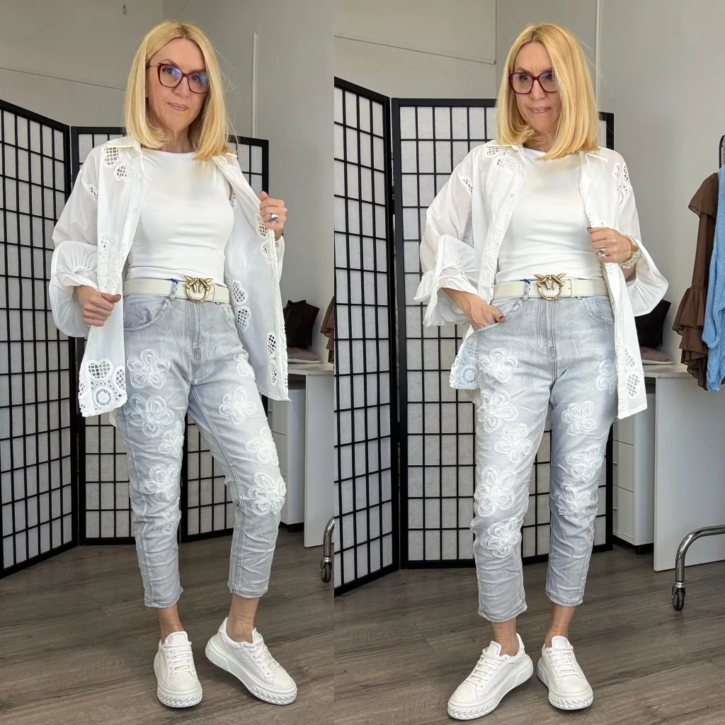 S Woman virágos farmer SW 1360-világosszürke
