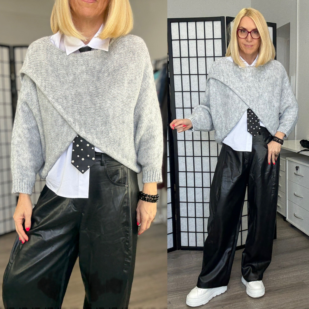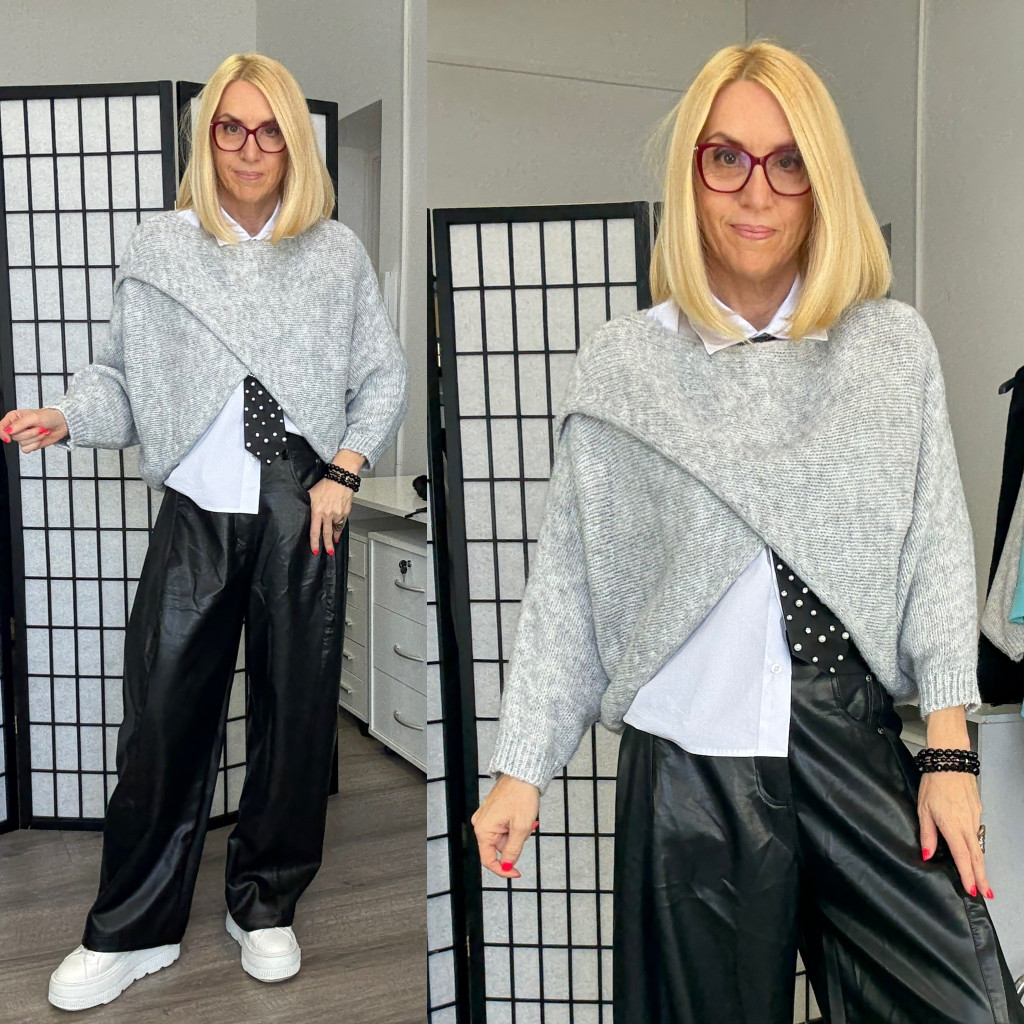 STAR crop hosszú ujjú csomós felső 5067 - szürke