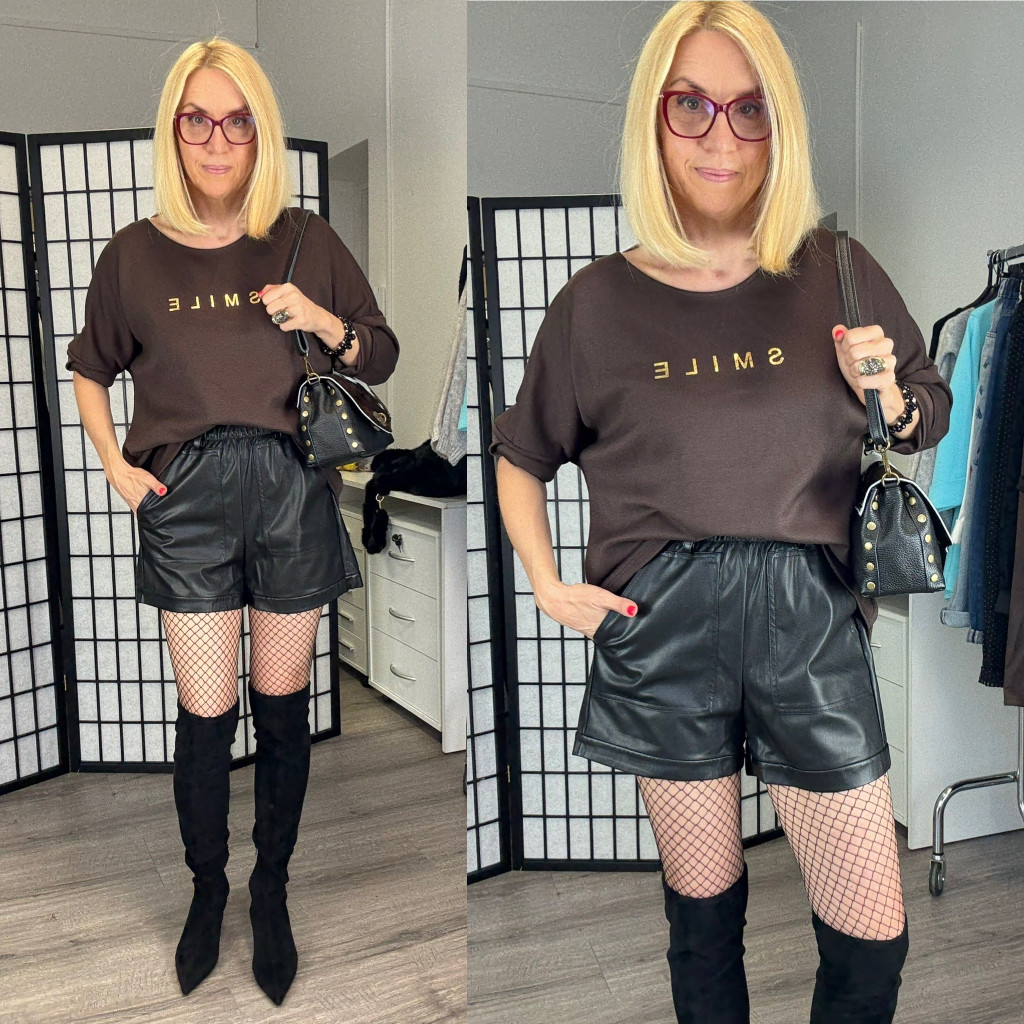 Smile hosszú ujjú viszkóz felső 25527-18 - csokibarna