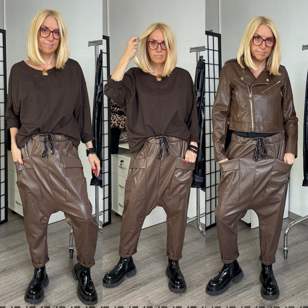Sunflower műbőr gumisderekú nadrág - csokibarna