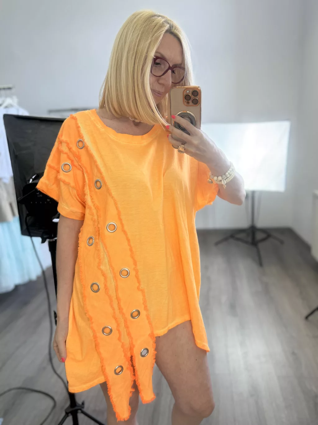 Sunflower szegecses pamut tunika-neonnarancs