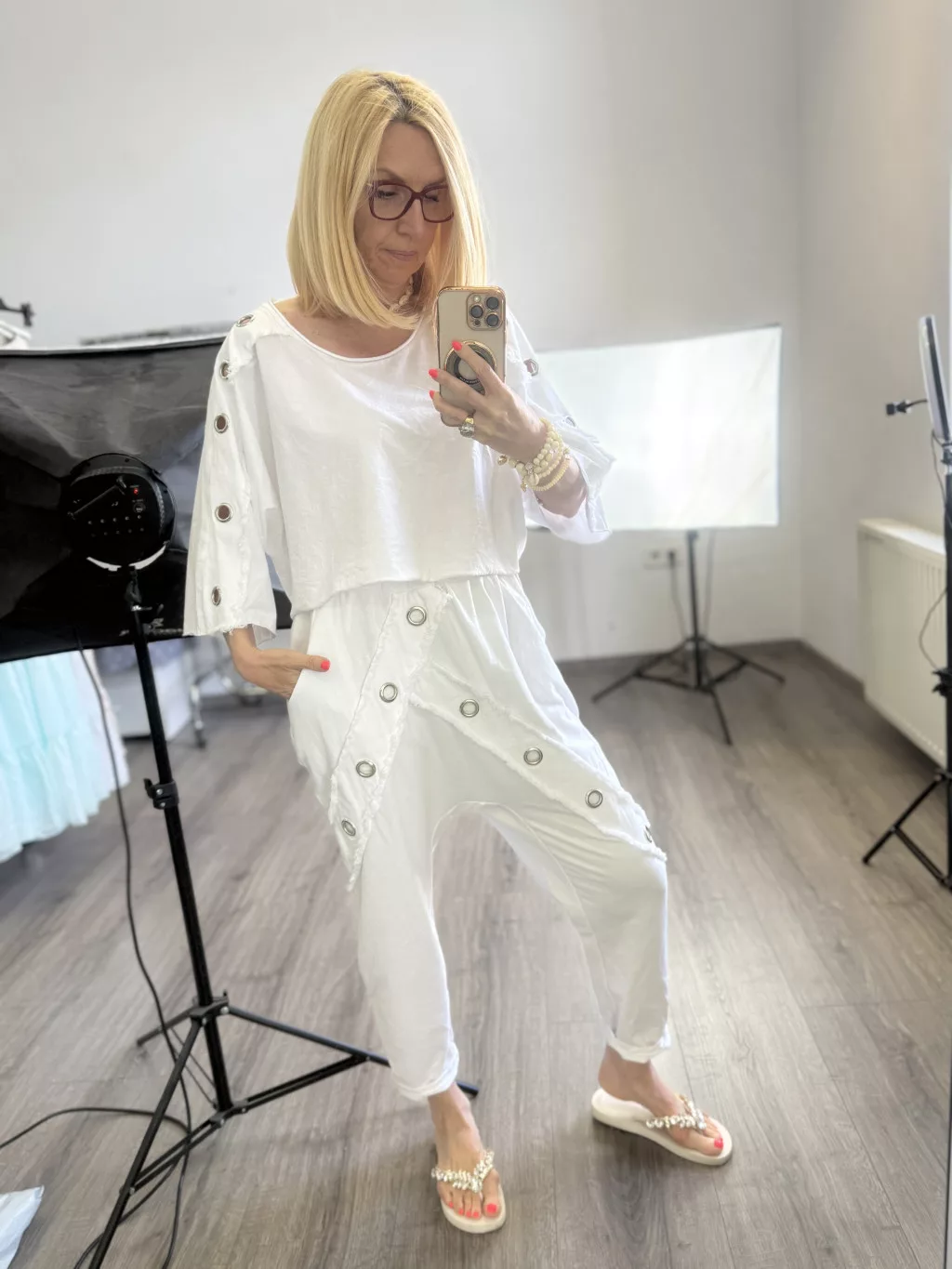Sunflower szegecses ülepes pamut nadrág 260503 - fehér