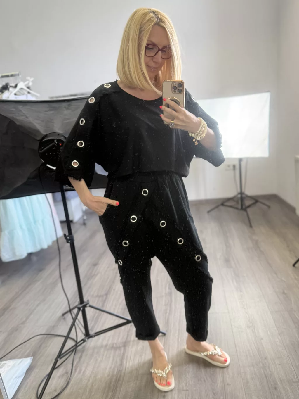 Sunflower szegecses ülepes pamut nadrág 260503 - fekete