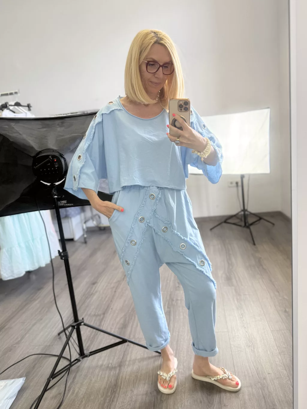 Sunflower szegecses ülepes pamut nadrág 260503 - világoskék