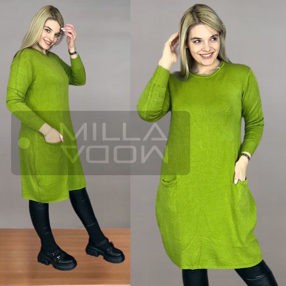 Sziéna környakú zsebes kötött ruha 7866 - oliva