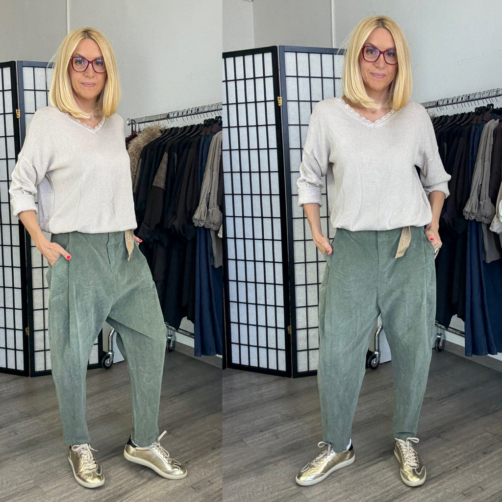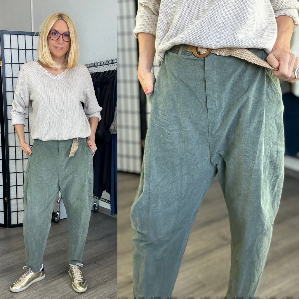 Tina mikrokord ülepes nadrág övvel 5469 - khaki