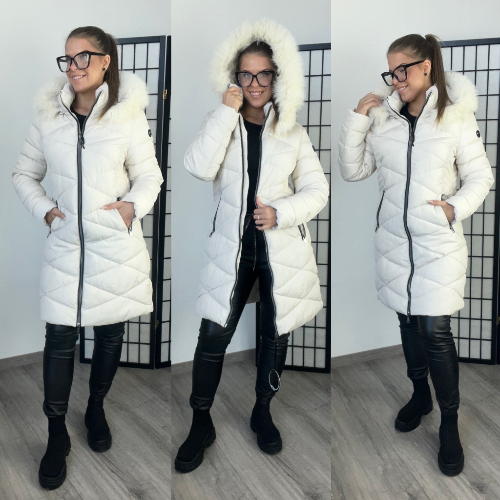 Karcsúsított szabású, térdig érő télikabát szőrmés kapucnival, amely stílusos és meleg viselet a hideg napokra. Praktikus zsebekkel és kényelmes belső béléssel rendelkezik. Tökéletes választás mindennapi használatra.