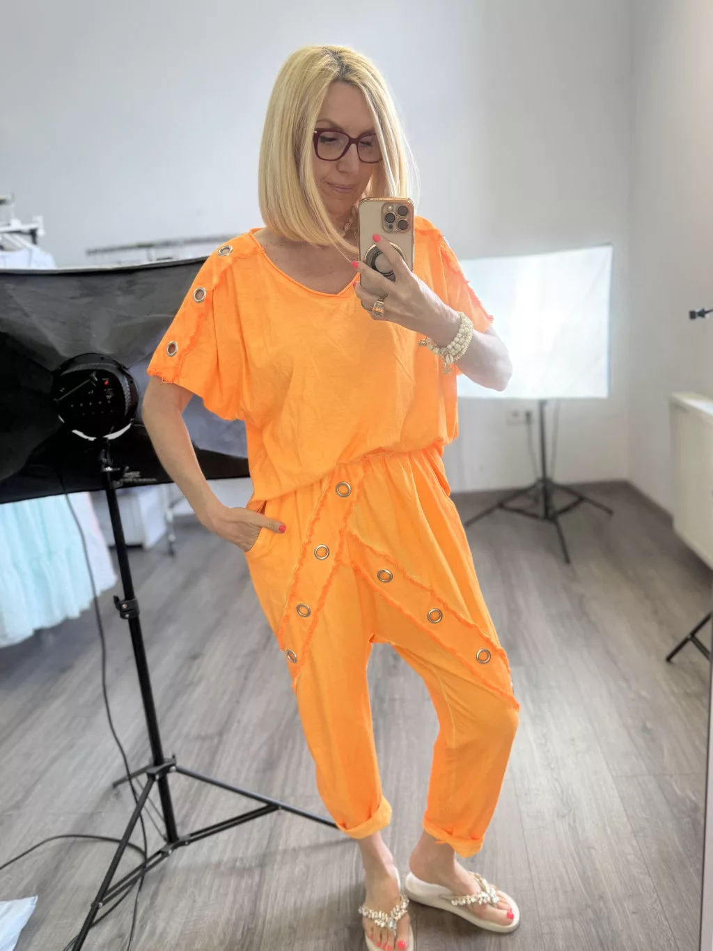 Sunflower szegecses ülepes pamut nadrág 260503 - neonnarancs