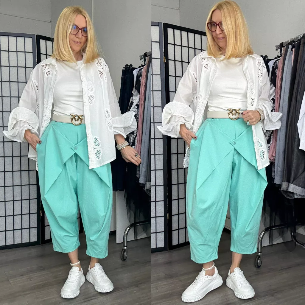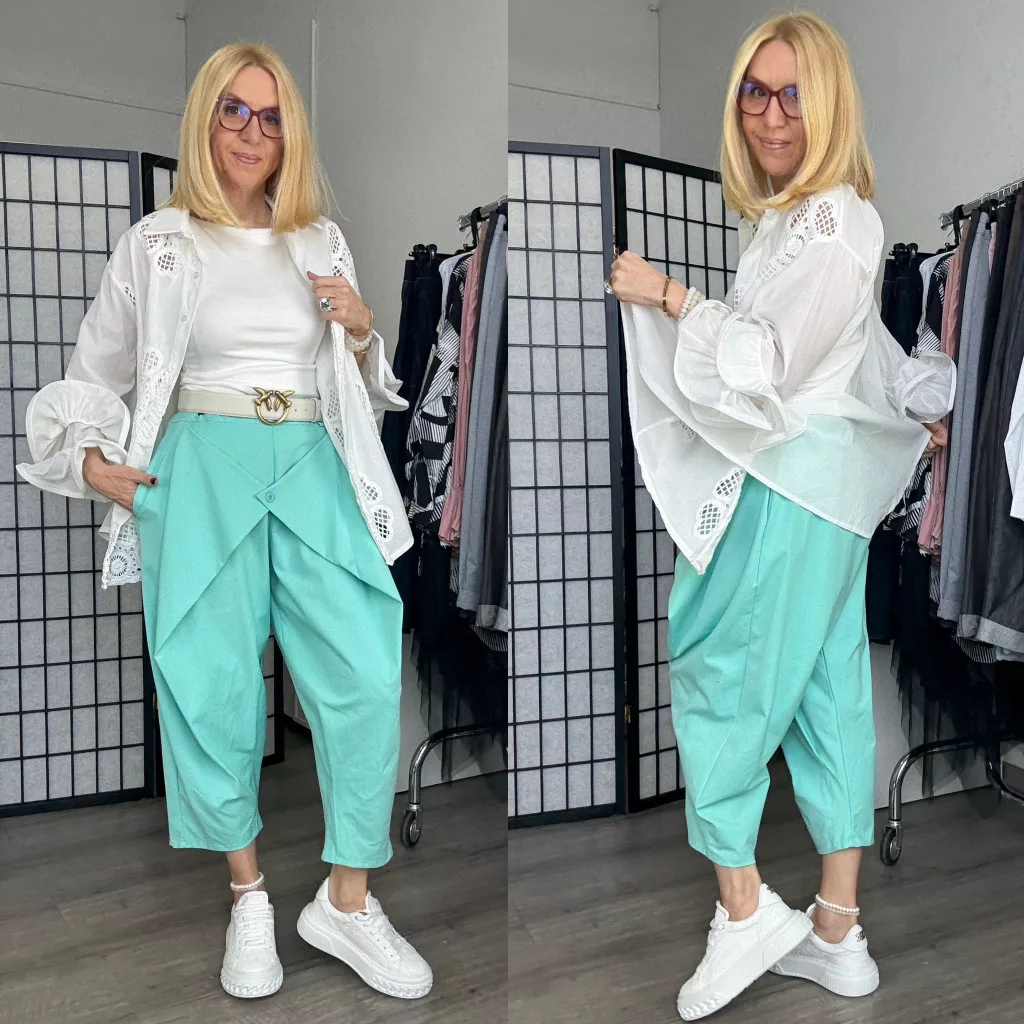 Lux Luna elől átlapolt gombos nadrág övvel 51840-menta
