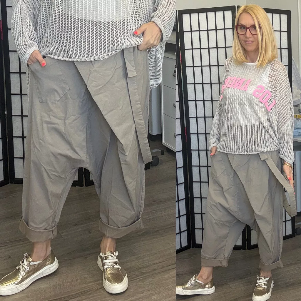 Hello Mya gumis derekú elasztikus ülepes vászon nadrág 70962 - taupe