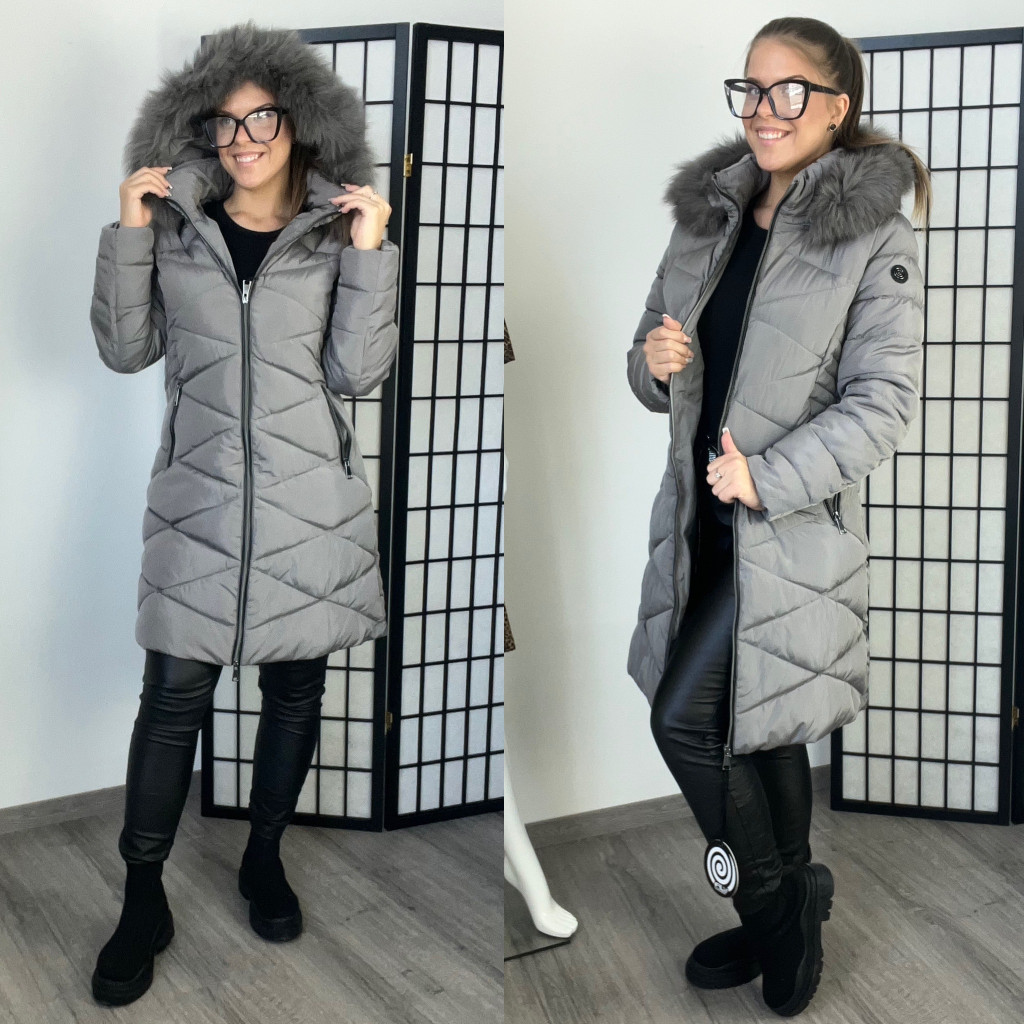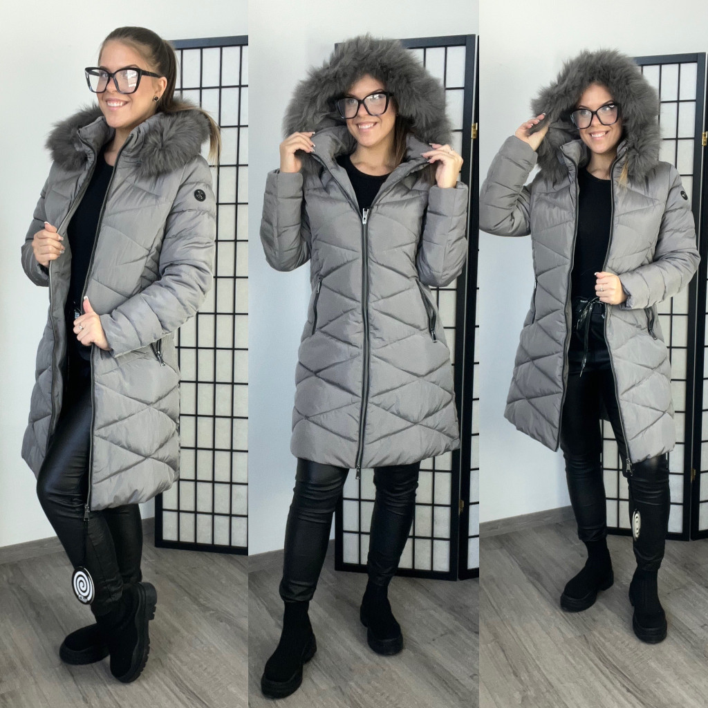 Karcsúsított szabású, térdig érő télikabát szőrmés kapucnival, amely stílusos és meleg viselet a hideg napokra. Praktikus zsebekkel és kényelmes belső béléssel rendelkezik. Tökéletes választás mindennapi használatra.