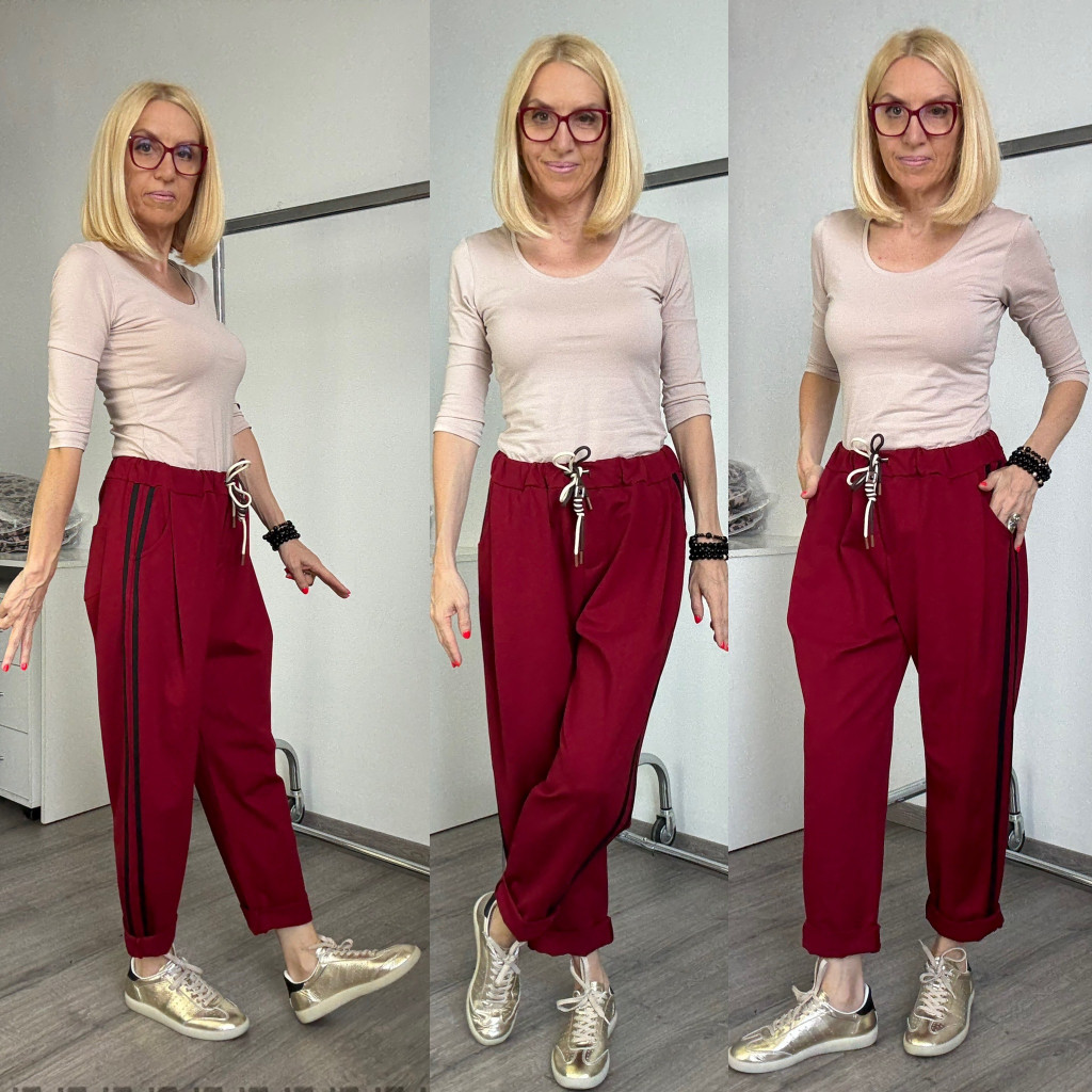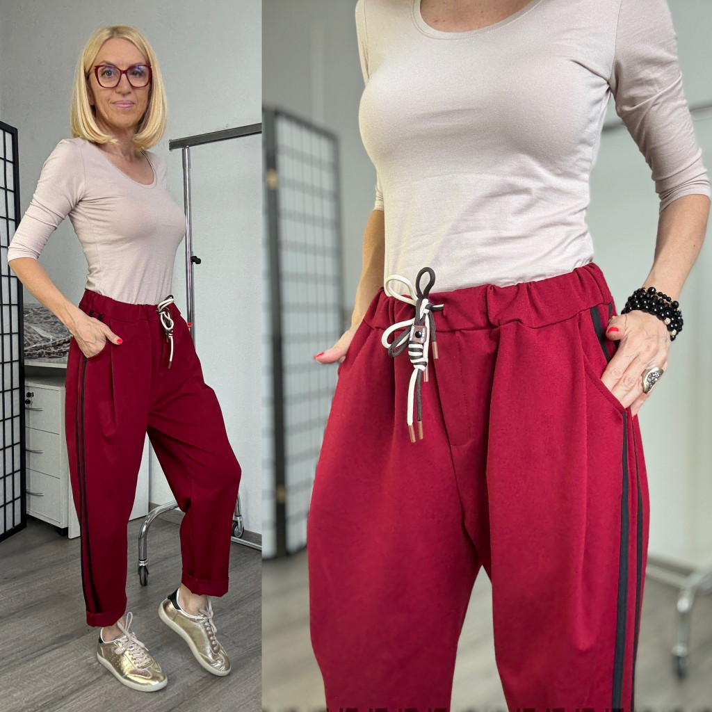 Chebkun gumis derekú oldalán csíkos nadrág 7669-bordó